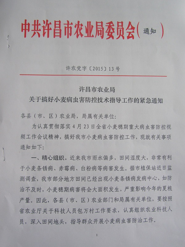 许昌市365bet线上平台_365bet指数_365正规官网局关于搞好小麦病虫害防控技术指导工作的紧急通知