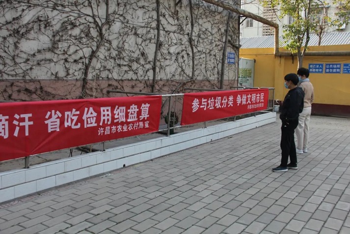 在共建共驻河西社区,志愿者悬挂起“一斤粮,千滴汗,省吃俭用细盘算”“参与垃圾分类,争做文明市民”的横幅,拿着图文并茂的宣传页向居民讲解垃圾分类的重要性、方法,垃圾分类习惯养成等知识,将垃圾分类的理念传播给更多的人,提高社区居民对垃圾分类知识的知晓率,引导居民自觉养成垃圾分类、节约粮食的生活习惯。